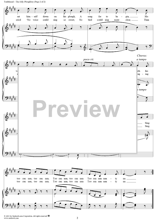 Digital Sheet Music for The Jolly Ploughboy by Traditional scored for Piano/Vocal; id:258647