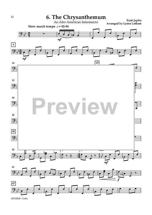 Digital Sheet Music for The Joplin Album - for String Trio - Cello by , Scott Joplin, Lynne Latham scored for String Trio; id:460258