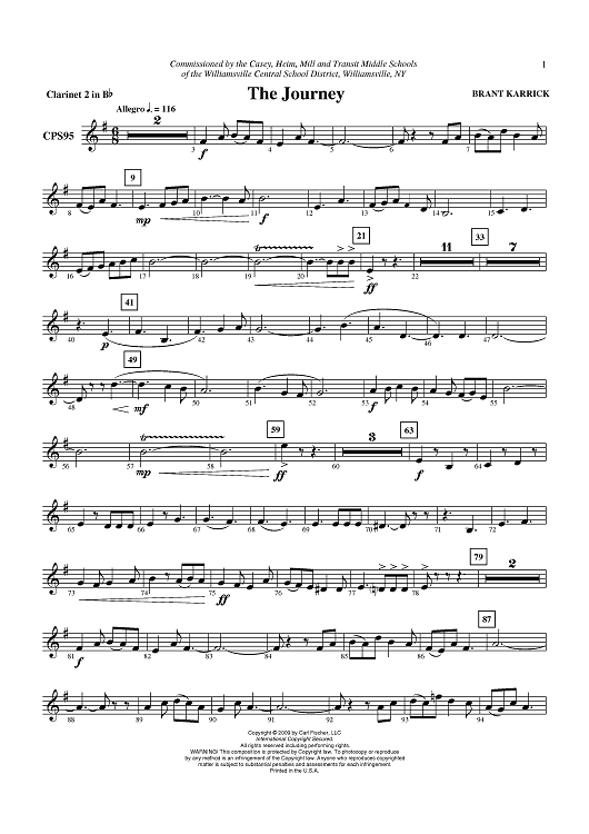 Digital Sheet Music for The Journey - Clarinet 2 in B-flat by Brant Karrick scored for Concert Band; id:405823