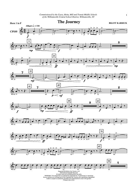 Digital Sheet Music for The Journey - Horn 1 in F by Brant Karrick scored for Concert Band; id:405834