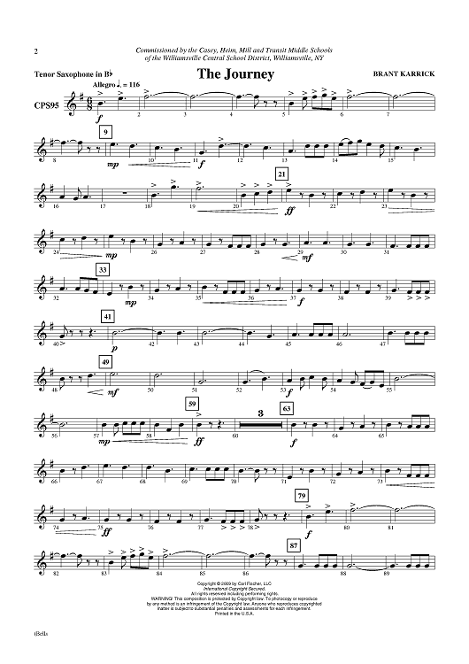 Digital Sheet Music for The Journey - Tenor Sax by Brant Karrick scored for Concert Band; id:405829
