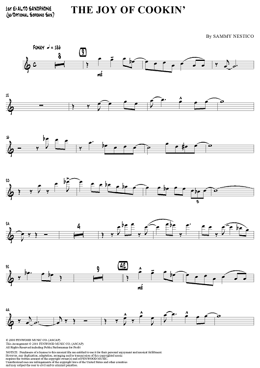 "The Joy of Cookin' - Alto Saxophone 1/Soprano Sax" Sheet Music by Sammy Nestico