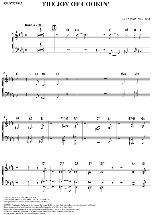 "The Joy of Cookin' - Piano" Sheet Music by Sammy Nestico