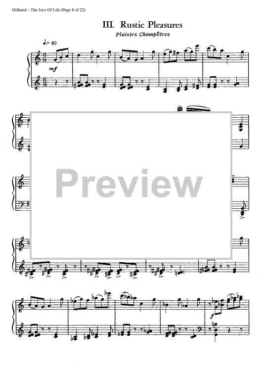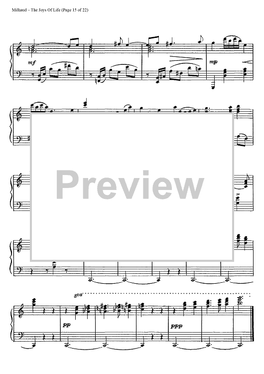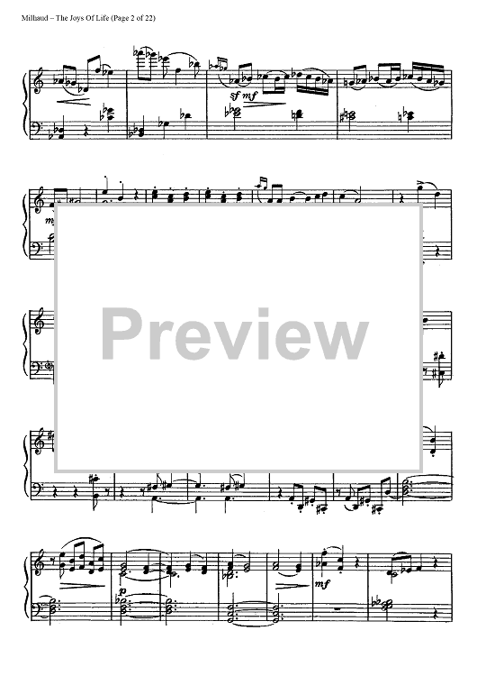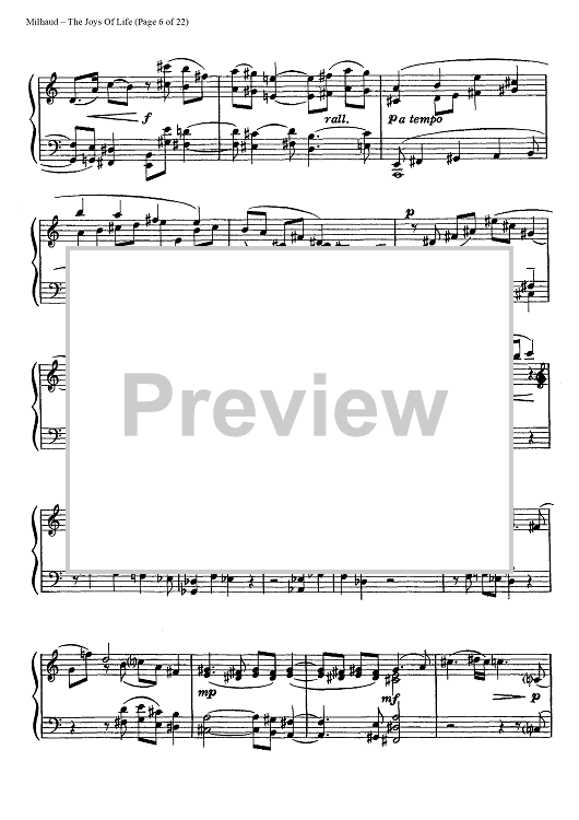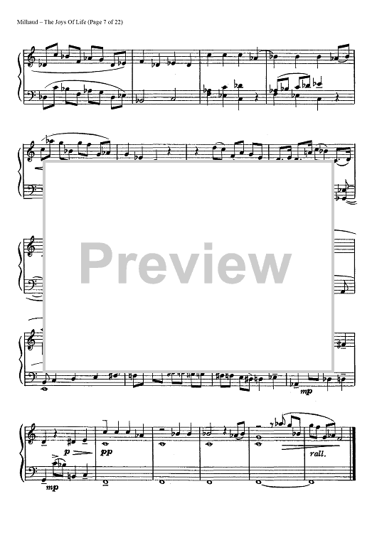 Digital Sheet Music for The Joys of Life (Les Charmes de la Vie) by Darius Milhaud scored for Piano Solo; id:438565