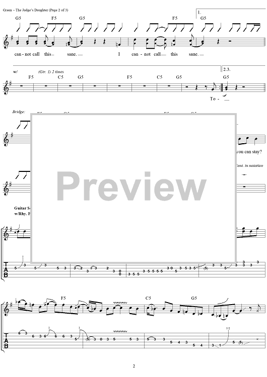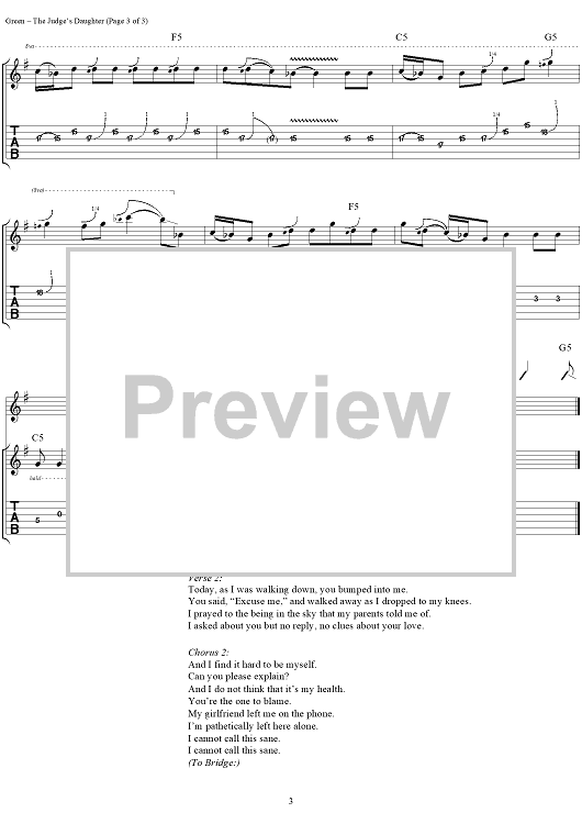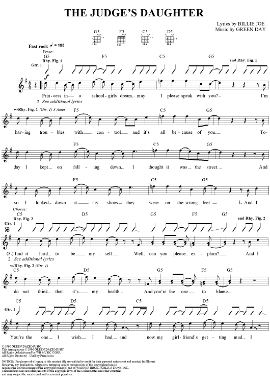 Digital Sheet Music for The Judge's Daughter by Billie Joe Armstrong, Green Day scored for Guitar Tab/Vocal; id:112984