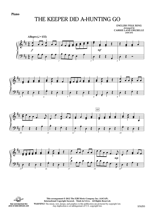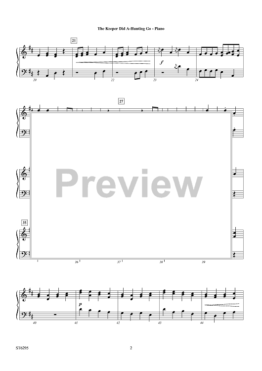 "The Keeper Did A-Hunting Go - Piano" Sheet Music by English Folk Song