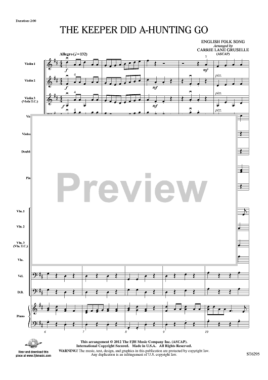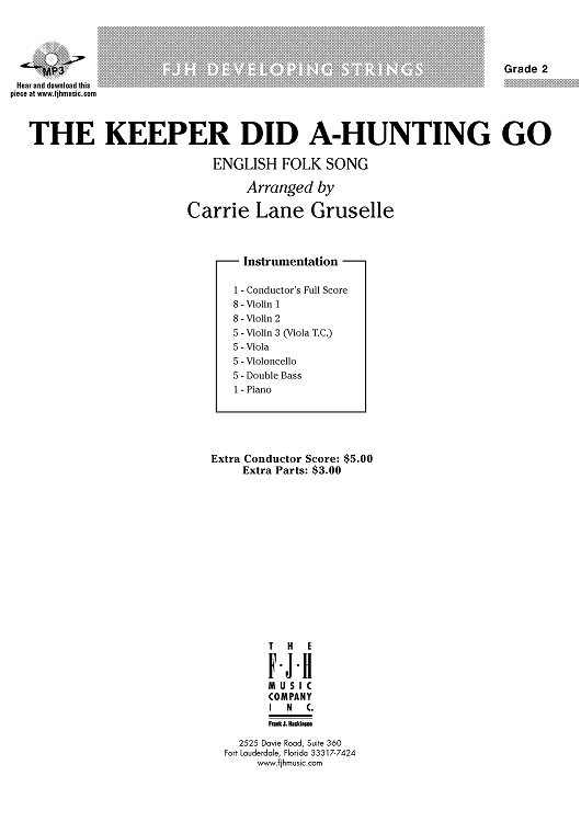 Digital Sheet Music for The Keeper Did A-Hunting Go - Score by English Folk Song, Carrie Lane Gruselle scored for String Orchestra; id:432188