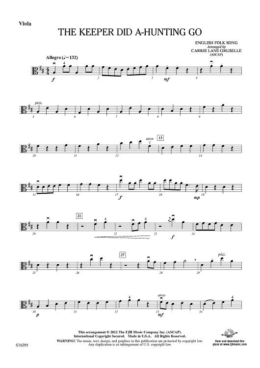Digital Sheet Music for The Keeper Did A-Hunting Go - Viola by English Folk Song, Carrie Lane Gruselle scored for String Orchestra; id:432192
