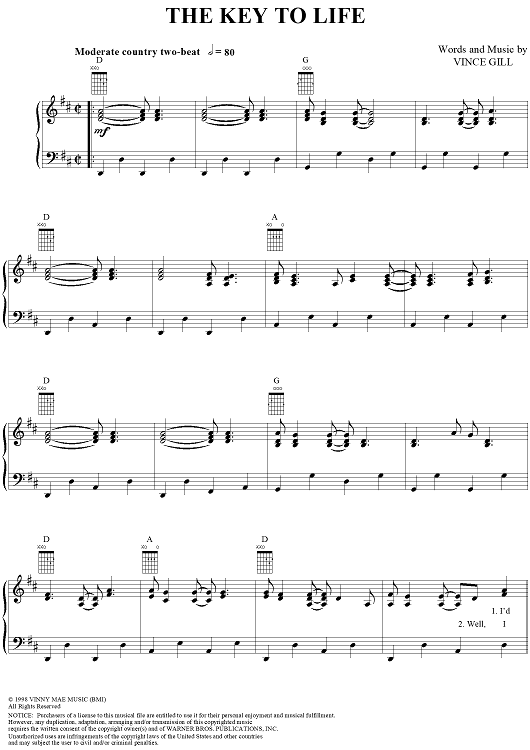 Digital Sheet Music for The Key To Life by Vince Gill scored for Piano/Vocal/Chords; id:268549