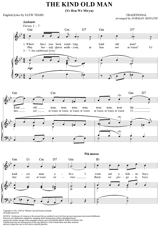 Digital Sheet Music for The Kind Old Man by Norman Monath, Traditional scored for Piano/Vocal/Chords; id:259645