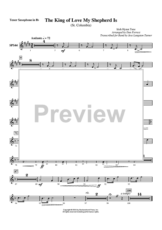 Digital Sheet Music for The King of Love My Shepherd Is (St. Columbia) - Tenor Sax by Dan Forrest, Irish Hymn Tune scored for Concert Band; id:412681