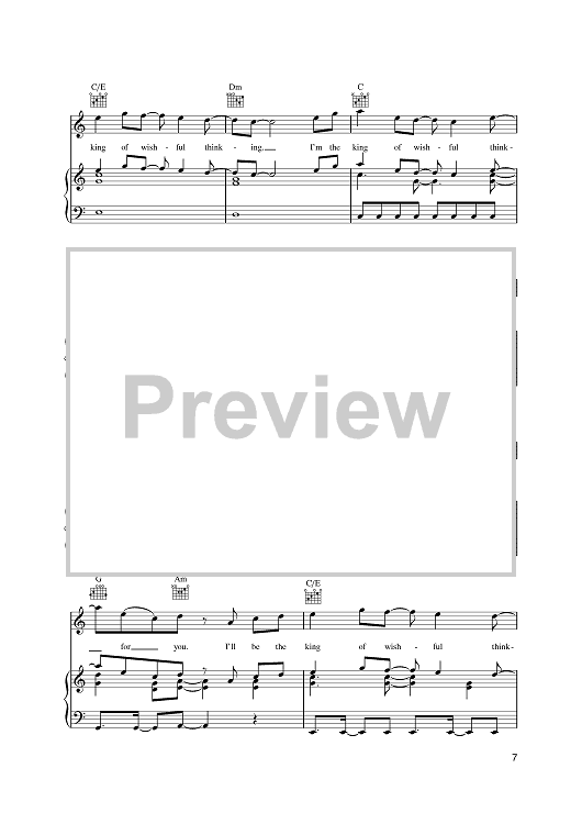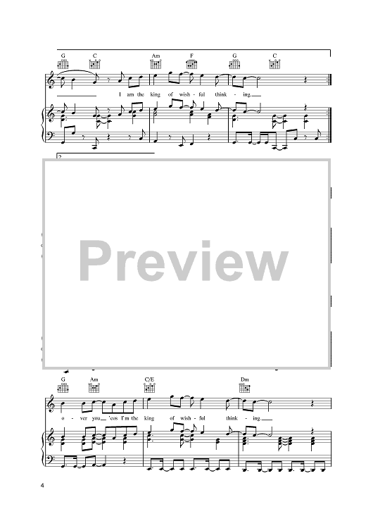 Digital Sheet Music for The King Of Wishful Thinking by Go West, Martin Page, Peter Cox, Richard Drummie scored for Piano/Vocal/Chords; id:387684