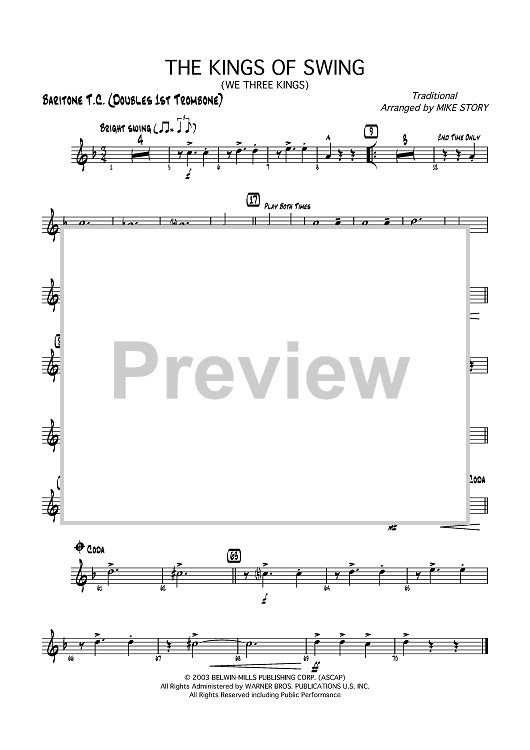 Digital Sheet Music for The Kings of Swing (We Three Kings) - Baritone TC by Mike Story, Traditional scored for Jazz Ensemble; id:358278