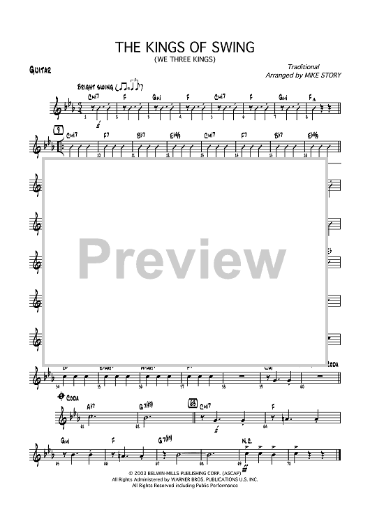 Digital Sheet Music for The Kings of Swing (We Three Kings) - Guitar by Mike Story, Traditional scored for Jazz Ensemble; id:358282