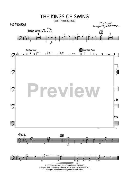 Digital Sheet Music for The Kings of Swing (We Three Kings) - Trombone 3 by Mike Story, Traditional scored for Jazz Ensemble; id:358280