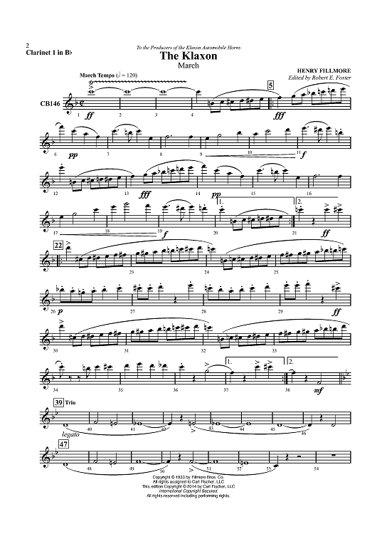 Digital Sheet Music for The Klaxon - Clarinet 1 in Bb by Henry Fillmore, Robert E. Foster scored for Concert Band; id:453489