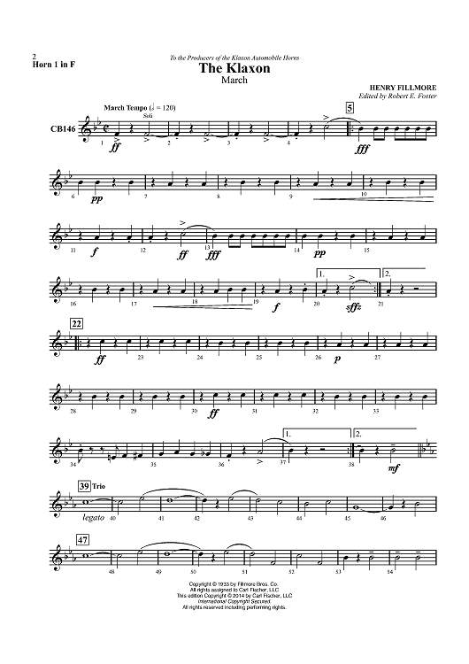 "The Klaxon - Horn 1 in F" Sheet Music by Henry Fillmore