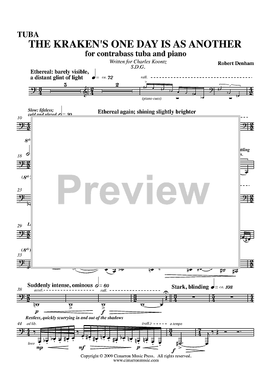 Digital Sheet Music for The Kraken's One Day is as Another - Tuba by Robert Denham scored for Tuba and Piano; id:413375