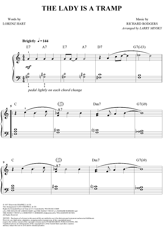 Digital Sheet Music for The Lady Is A Tramp by Richard Rodgers, Lorenz Hart, Larry Minsky scored for Easy Piano; id:316060