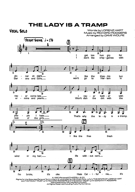 "The Lady Is A Tramp - Vocal Solo" Sheet Music by Richard Rodgers