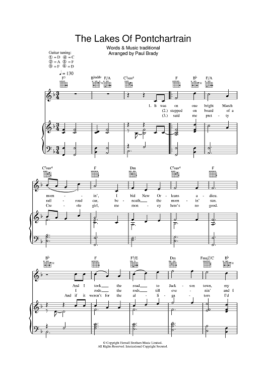 Digital Sheet Music for The Lakes Of Pontchartrain by Paul Brady scored for Piano/Vocal/Chords; id:398816