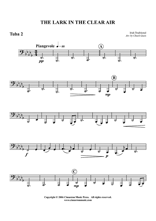 Digital Sheet Music for The Lark in the Clear Air - Tuba 2 by Chuck Guzis, Irish Traditional scored for Tuba Quartet; id:360241