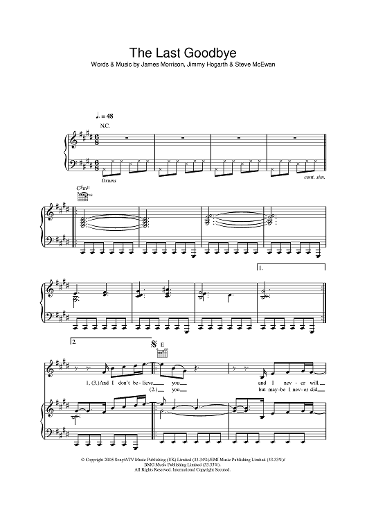 Digital Sheet Music for The Last Goodbye by Steve McEwan, James Morrison, Jimmy Hogarth scored for Piano/Vocal/Chords; id:393650