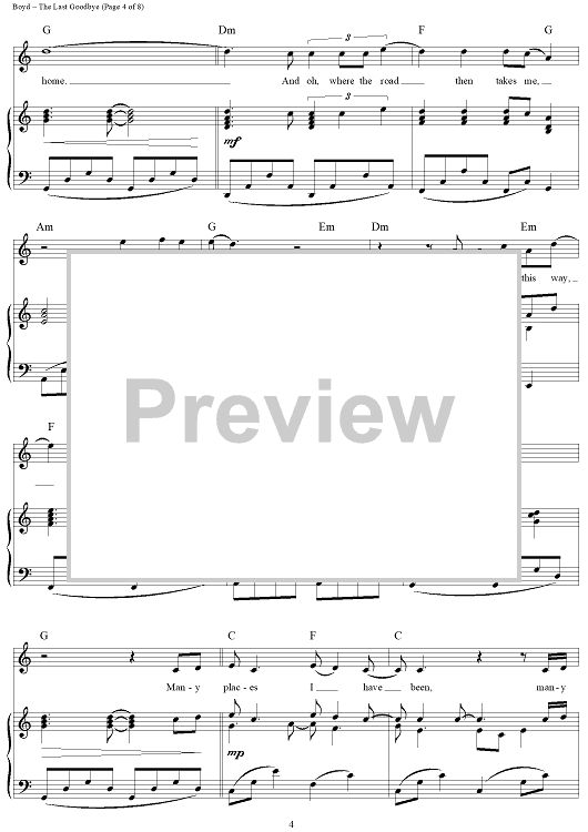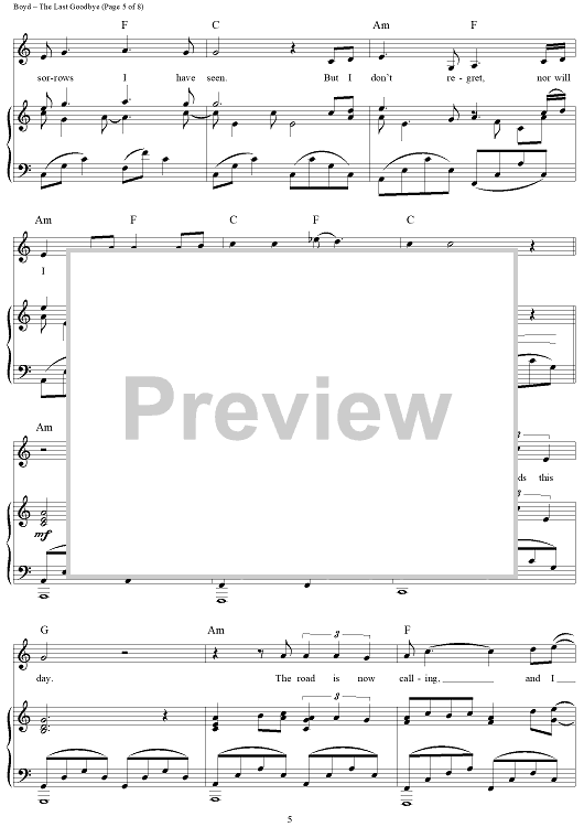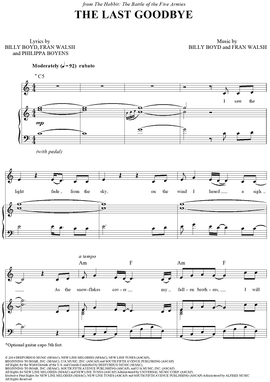Digital Sheet Music for The Last Goodbye by Fran Walsh, Philippa Boyens, Billy Boyd scored for Piano/Vocal/Chords; id:445393