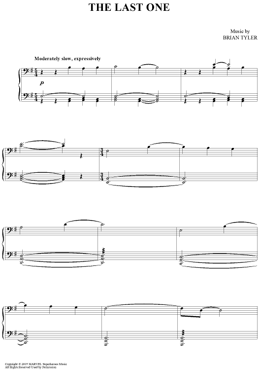 Digital Sheet Music for The Last One by Brian Tyler scored for Piano Solo; id:457511