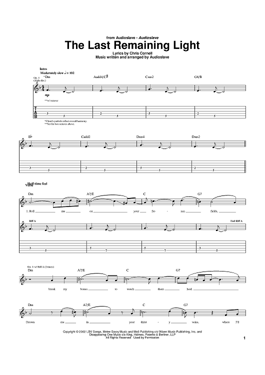 Digital Sheet Music for The Last Remaining Light by Audioslave, Chris Cornell scored for Guitar Tab; id:372426