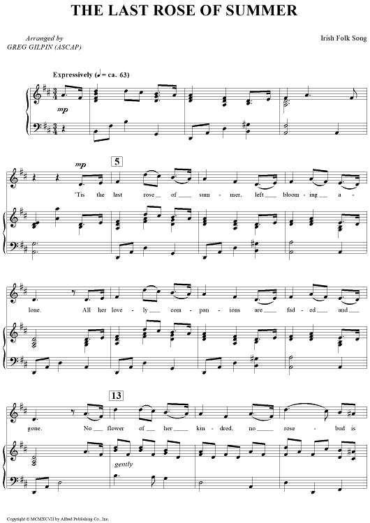 Digital Sheet Music for The Last Rose Of Summer by Irish Folk Song, Greg Gilpin scored for Piano/Vocal; id:459093