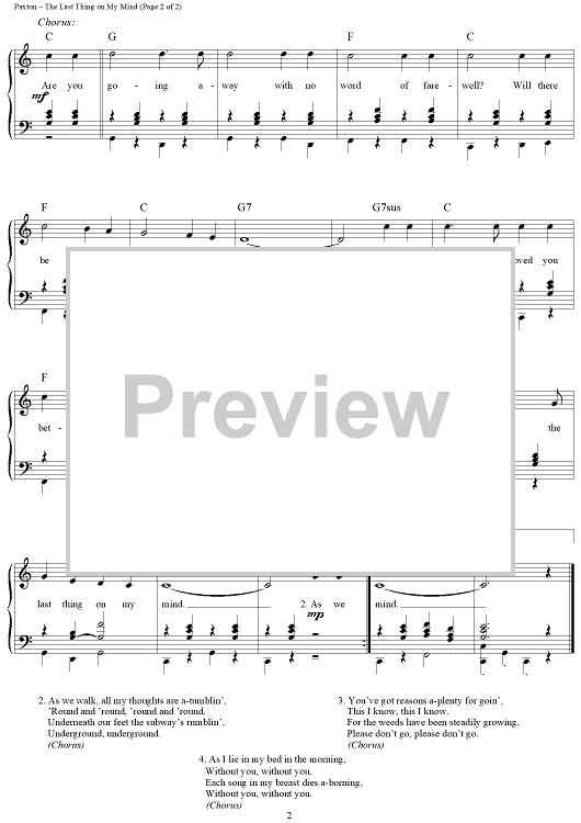 "The Last Thing On My Mind" Sheet Music by Tom Paxton