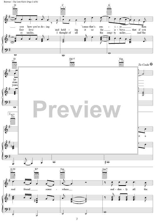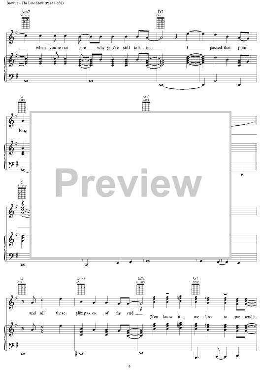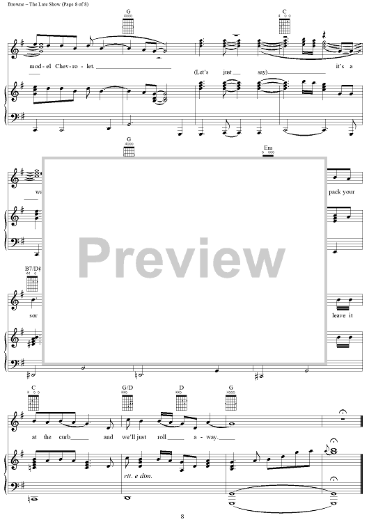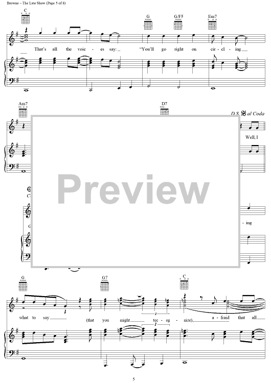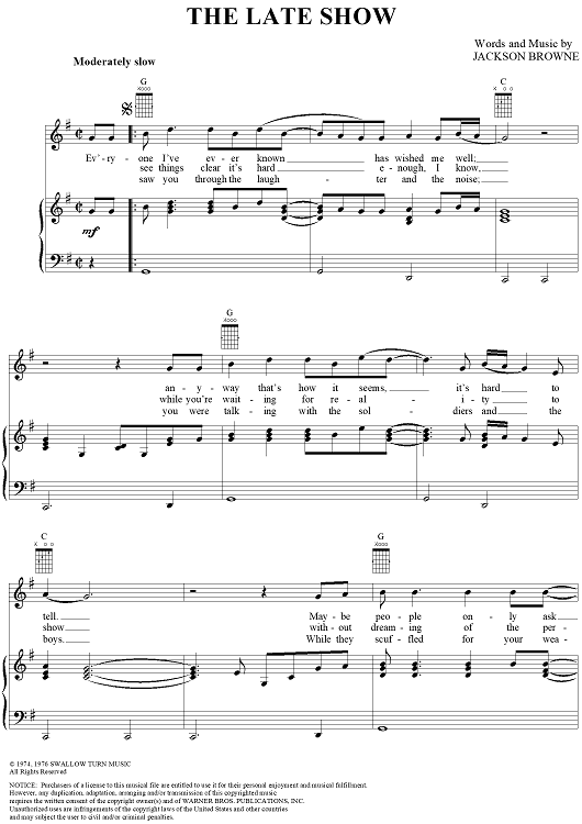 Digital Sheet Music for The Late Show by Jackson Browne scored for Piano/Vocal/Chords; id:274306