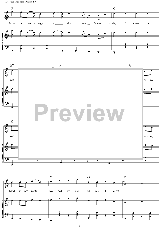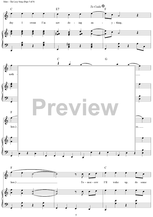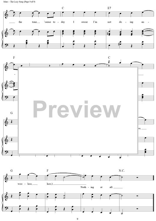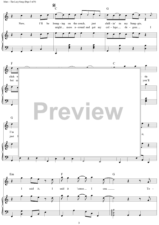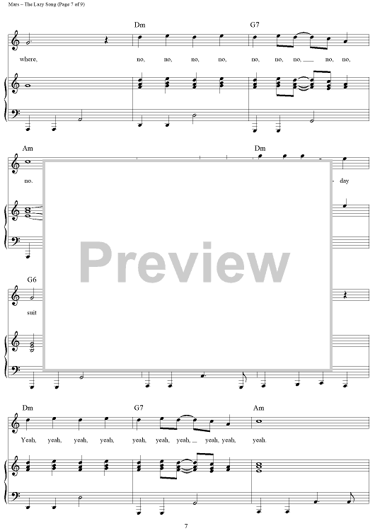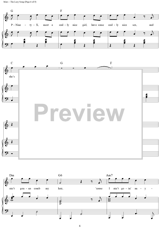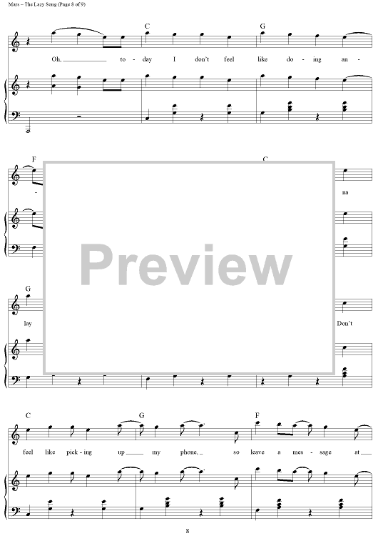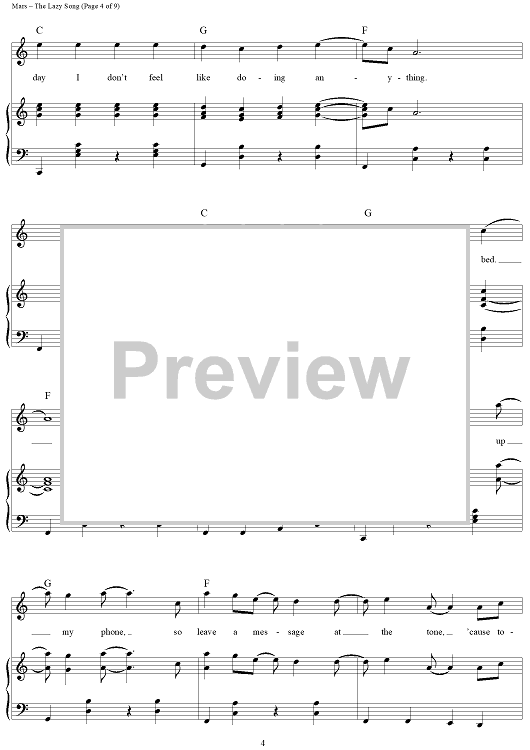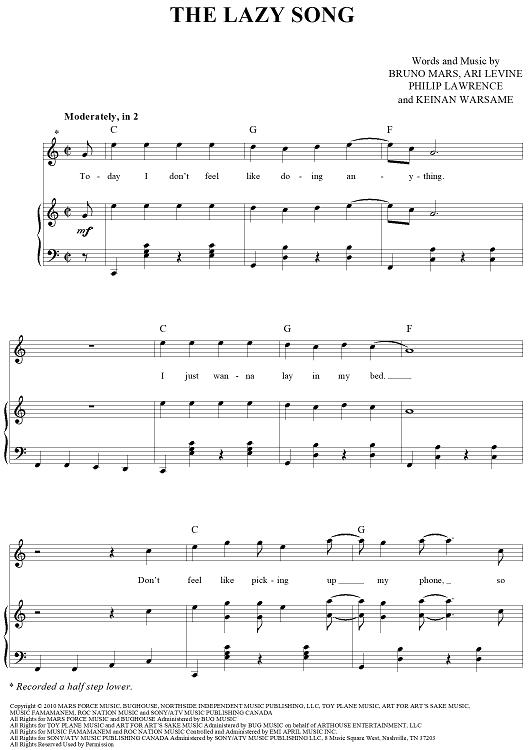 Digital Sheet Music for The Lazy Song by Ari Levine, Philip Lawrence, Bruno Mars, Keinan Warsame scored for Piano/Vocal/Chords; id:419471