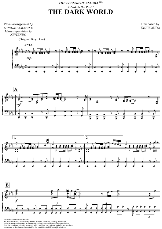 "The Legend of Zelda: A Link to the Past - The Dark World" Sheet Music by Koji Kondo
