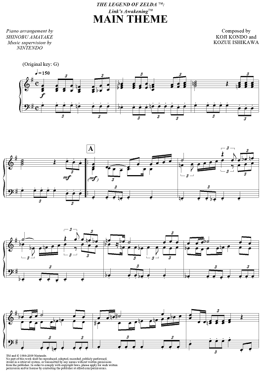 Digital Sheet Music for The Legend of Zelda: Link's Awakening - Main Theme by Koji Kondo, Shinobu Amayake, Kozue Ishikawa scored for Piano Solo; id:444537