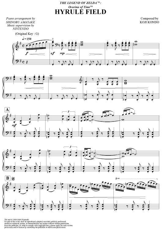Digital Sheet Music for The Legend of Zelda: Ocarina of Time - Hyrule Field by Koji Kondo, Shinobu Amayake scored for Piano Solo; id:444539