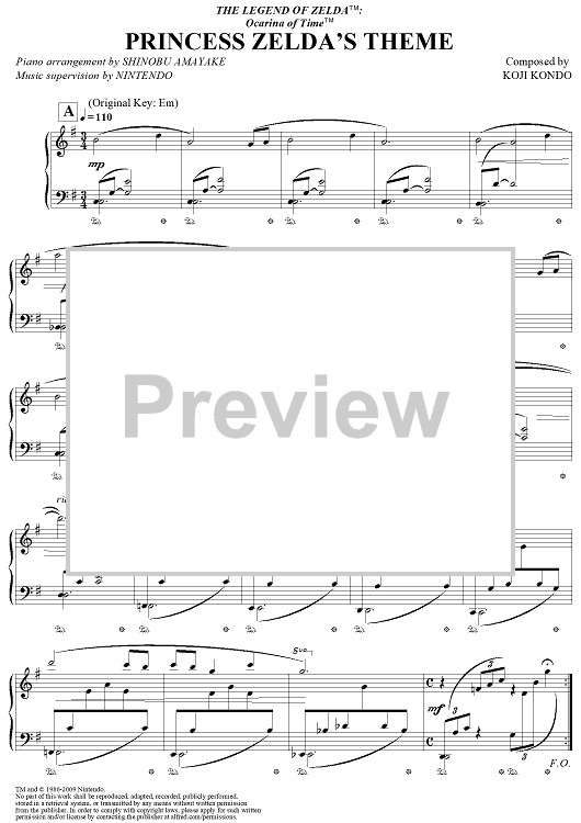 "The Legend of Zelda: Ocarina of Time - Princess Zelda's Theme" Sheet Music by Koji Kondo