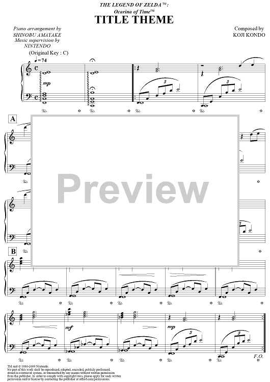 Digital Sheet Music for The Legend of Zelda: Ocarina of Time - Title Theme by Koji Kondo, Shinobu Amayake scored for Piano Solo; id:444541