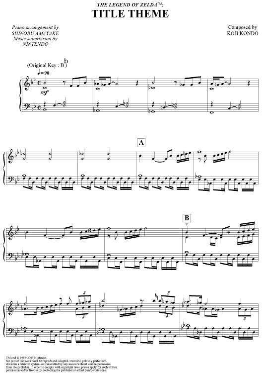 Digital Sheet Music for The Legend of Zelda: Title Theme by Koji Kondo, Shinobu Amayake scored for Piano Solo; id:444529