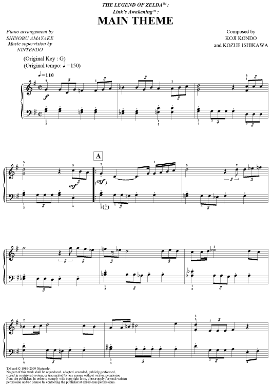 "The Legend of Zelda™: Link's Awakening™: Main Theme" Sheet Music by Koji Kondo