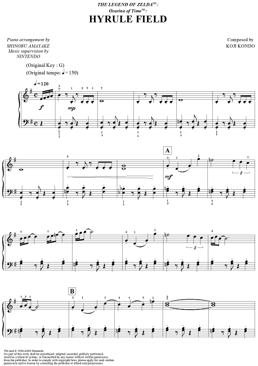 Digital Sheet Music for The Legend of Zelda™: Ocarina of Time™: Hyrule Field by Koji Kondo, Shinobu Amayake scored for Easy Piano; id:445131