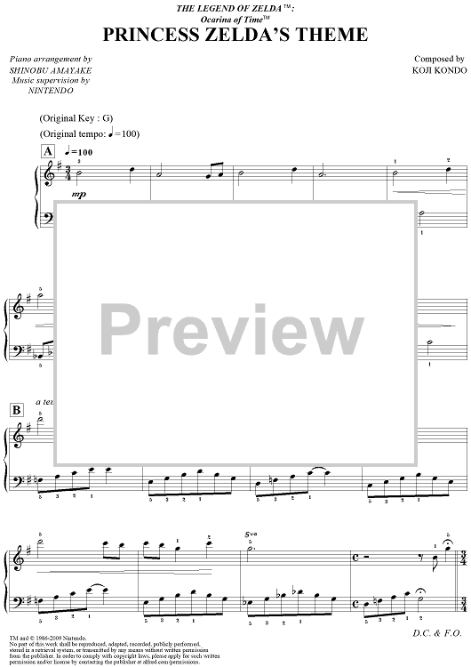 "The Legend of Zelda™: Ocarina of Time™: Princess Zelda's Theme" Sheet Music by Koji Kondo