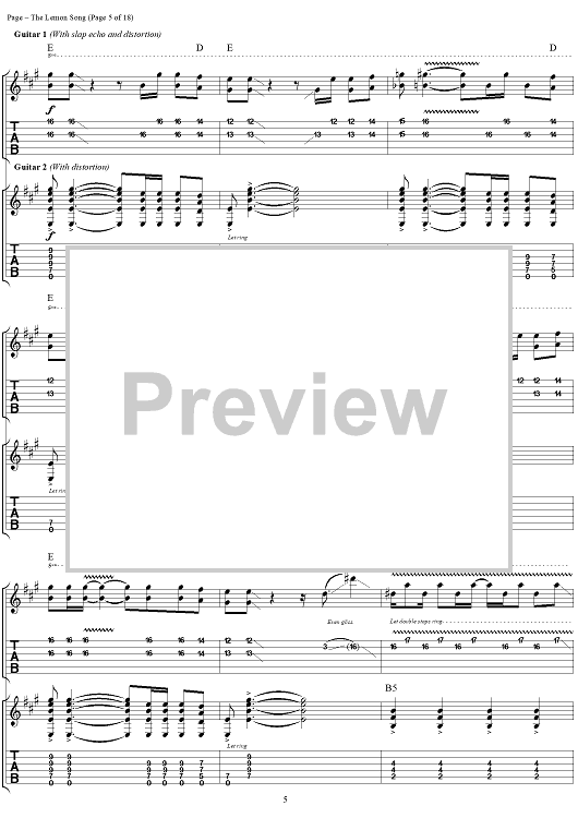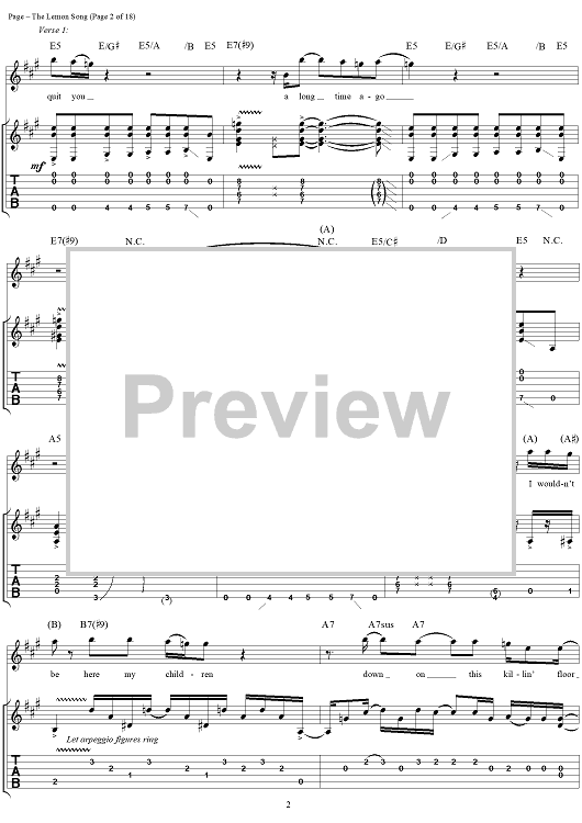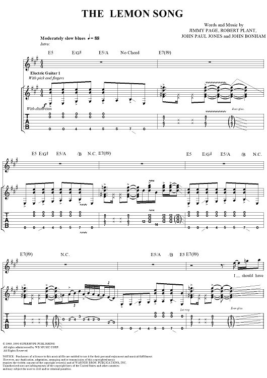 "The Lemon Song" Sheet Music by Led Zeppelin