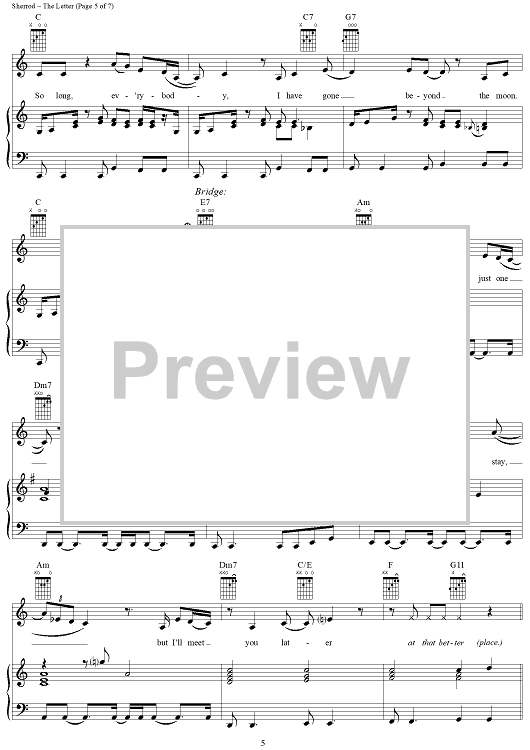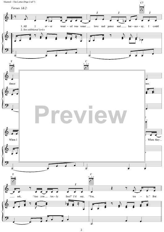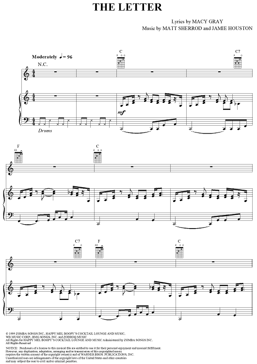 Digital Sheet Music for The Letter by Jamie Houston, Macy Gray, Matt Sherrod scored for Piano/Vocal/Chords; id:283033