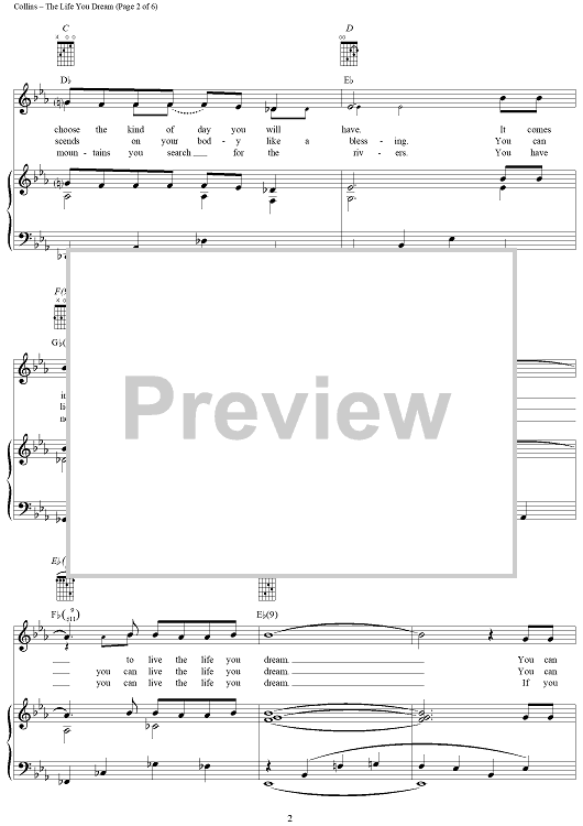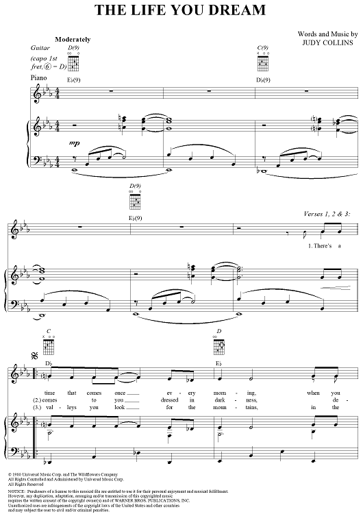 Digital Sheet Music for The Life You Dream by Judy Collins scored for Piano/Vocal/Chords; id:285996