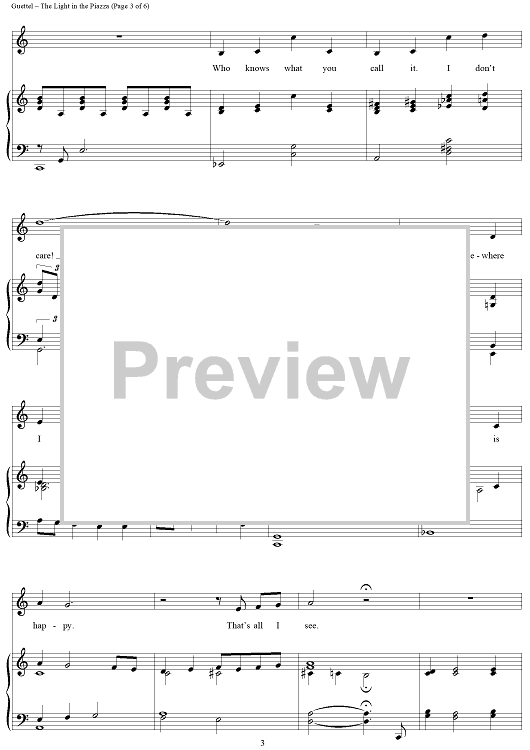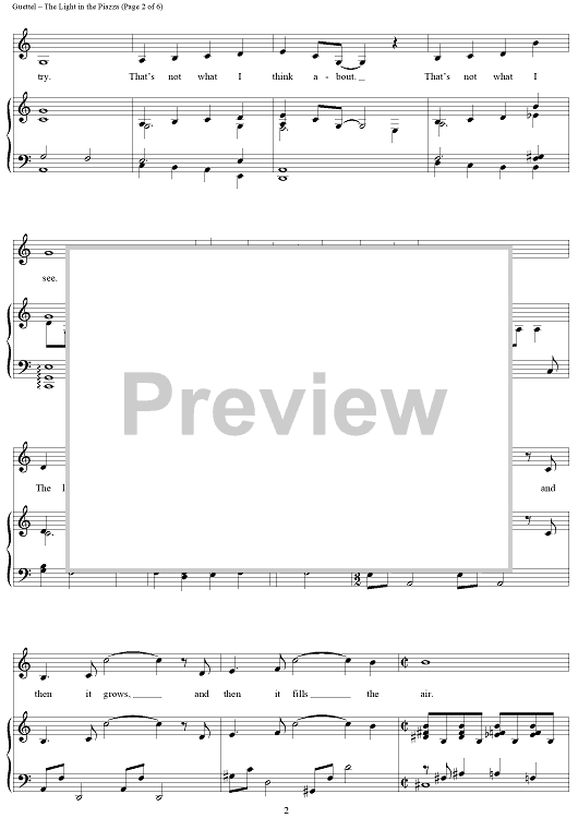 Digital Sheet Music for The Light in the Piazza by Adam Guettel scored for Piano/Vocal; id:366315