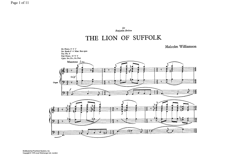 Digital Sheet Music for The Lion of Suffolk by Malcolm Williamson scored for Organ Solo; id:336012