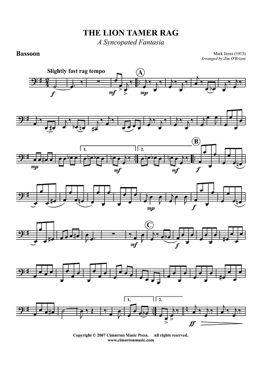 "The Lion Tamer Rag - Bassoon" Sheet Music by Mark Janza