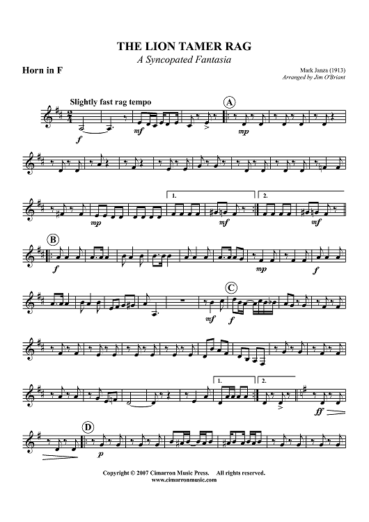 "The Lion Tamer Rag - Horn in F" Sheet Music by Mark Janza